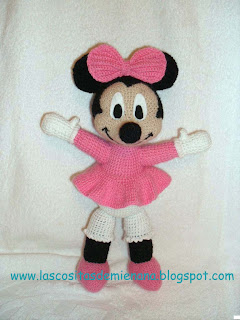 La Minnie que he realizado de amigurumi es una version que mezcla patrones ya existentes en la red, con otras cosas ido haciendo sobre la marcha a mi gusto. Debido a que bastantes personas me habeis estado preguntando por el patron he decidido hacerle todo lo mejor que se, pero no he podido detenerme mucho porque con el trabajo y la niña no me queda demasiado tiempo libre... Este patron es gratuito, podeis pasarlo a todas las personas que querais pero os agradeceria que si lo publicais en vuestros blog hagais mencion del mio jeje. Tambien os pido que si os dais cuenta de algo que este mal me lo hagais saber para poder hacer las modificaciones oportunas.