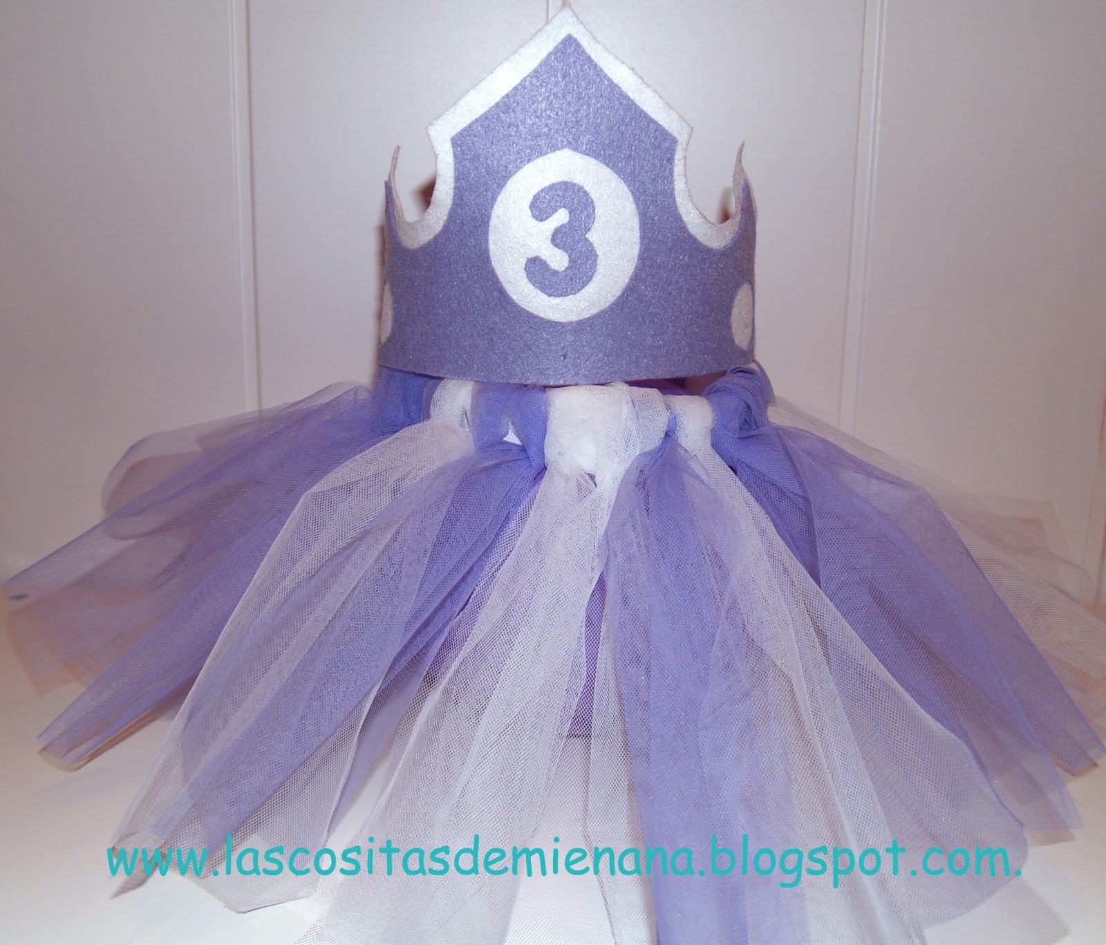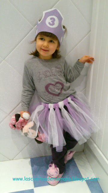 Continuando con las tradiciones de los cumpleaños este año tampoco podía faltar la corona, como ultimamente le ha dado por bailar decidí hacerla un tutu para acompañarla.